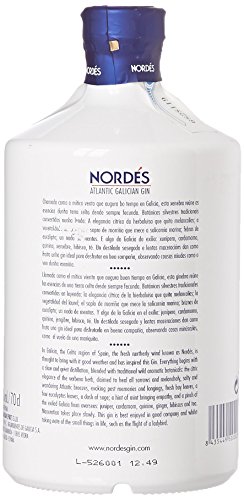 Directamente desde una de las cuatro provincias de Galicia en España, llega esta ginebra de marca Nordés con una presentación de 700 mililitros y un alto contenido de alcohol que se sitúa en los 40 grados.