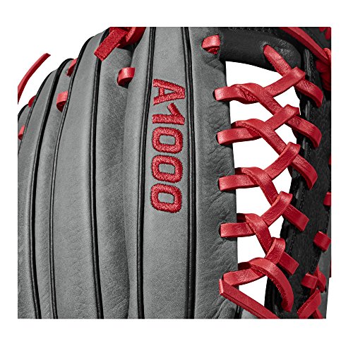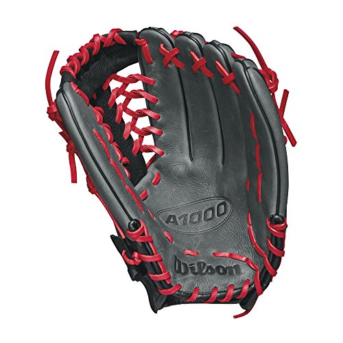 Este guante Wilson está diseñado para ser utilizado en la mano izquierda por jardineros o jugadores de outfielders, con cordones de cuero que brindan mejor protección al jugador mientras toma la pelota en el aire.