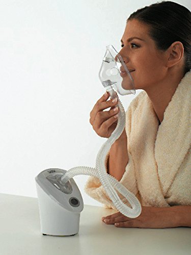 Cuenta con una presión máxima de 210 a 250 kPa, y la fuerza de la corriente de vapor es ajustable. Además este modelo viene certificado y aprobado como dispositivo médico de acuerdo con DIN 93/42 CEE y EN 60 601-1/A2. Incluye 1 máscara adulta, 1 máscara para niño, 1 boquilla y 1 pieza de la nariz.