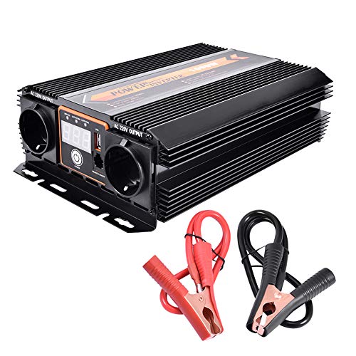 Este inversor de corriente emplea un sistema sinusoidal modificado con una salida continua de 1.000 vatios nominales, lo que nos permite llegar a una potencia máxima de hasta 2.000 vatios. Un sistema en el que el producto dispone de una considerable eficacia de conversión de la corriente, estimada en un 80% y compatible con cualquier entrada convencional de 12 voltios que tengamos a nuestro alcance.