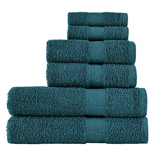 Con su compra, obtendrás un total de 8 toallas: 2 grandes de 69 x 137 centímetros, 2 de mano de 41 x 71 centímetros y 4 pequeñas de 30 x 30 centímetros. Todas presentan el mismo diseño unicolor y están fabricadas con un 100% de algodón. Tienen un tacto suave, así como también una alta capacidad de absorción, para quitar el exceso de humedad con pocas pasadas.