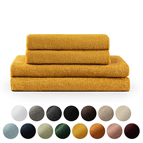 El atractivo color naranja de este set de toallas unisex es muy apreciado por los usuarios. En cuanto a calidad, tienen un gramaje de 550 porque están elaboradas con algodón peinado, suaves al tacto y con un nivel intermedio de absorción. Se trata de uno de los mejores juegos de toallas de 3 piezas con medidas estándares: 70 x 140 cm la de ducha, 50 x 100cm la de lavabo y 30 x 50cm la de tocador.