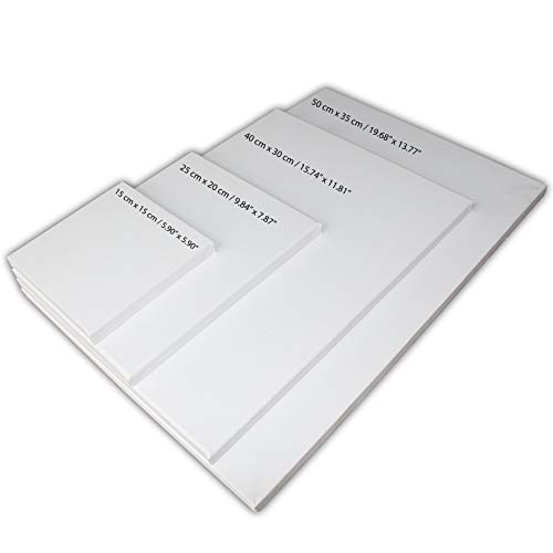 El mejor lienzo para pintar del momento puede ser este modelo, que consiste en un set de 12 paneles, siendo este un número suficiente de unidades para tus bocetos y obras. Los lienzos tienen unas medidas de 20 x 25 centímetros, que resultan apropiadas para la creación de cuadros diversos.