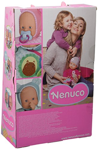 Este muñeco Nenuco cuenta con sonidos característicos de un bebé como succionar, llorar, reír y decir ma-ma y pa-pa, además tiene una textura blanda, adecuada para los niños pequeños.