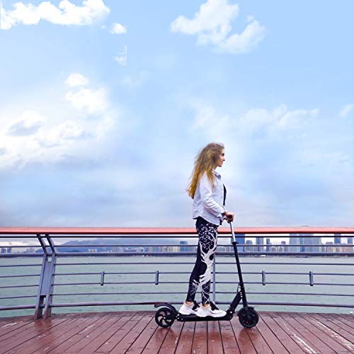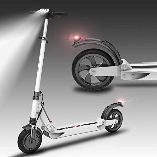 este modelo de patinete eléctrico es un poco más sencillo, pero puede serte práctico para distancias cortas. Llega a alcanzar una velocidad de 24 kilómetros por hora y podrás acelerar al máximo a través del giro de su manillar. una de sus ventajas es que es compacto y ligero. Tiene un peso de apenas 21 kilogramos para facilitar su manipulación y traslado. Así, podrás subirlo a cualquier ascensor sin ningún problema. trabaja con dos baterías recargables de 12 voltios cada una para un total de 24 voltios de potencia. Ambas ofrecen una autonomía de hasta 40 minutos por cada carga completa y con la compra se incluye el cargador. por último, las ruedas de este patinete son de 10” para ganar estabilidad y firmeza en la carretera y, además, ser resistentes y muy duraderas. un detalle a considerar con este patinete eléctrico para adultos es que no posee un asiento incorporado, por lo que podrías cansarte en trayectos largos.
