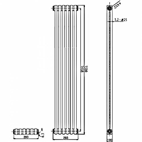 Gracias a su estructura y diseño, este modelo se puede conectar al sistema de calefacción central. Sus dimensiones son de 1,5 m de alto por 2,7 cm de ancho.