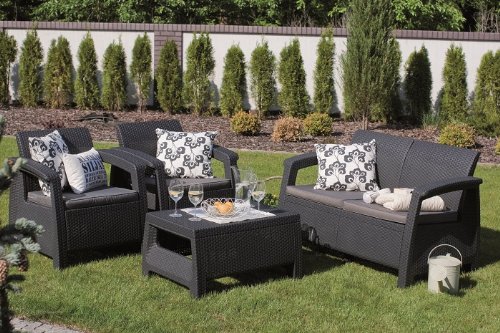 Allibert te ofrece el que podría ser el mejor sofá de jardín del momento con este modelo compuesto por un set robusto, duradero y cómodo: