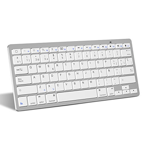 Si quieres saber cuál es el mejor teclado Bluetooth en tamaño mini, este modelo podría ofrecerte la respuesta, ya que tiene unas dimensiones de 28,5 x 12 x 0,6 cm y un peso de 281 g, que lo convierten en una buena opción para llevar contigo de un sitio a otro sin ocupar demasiado espacio.