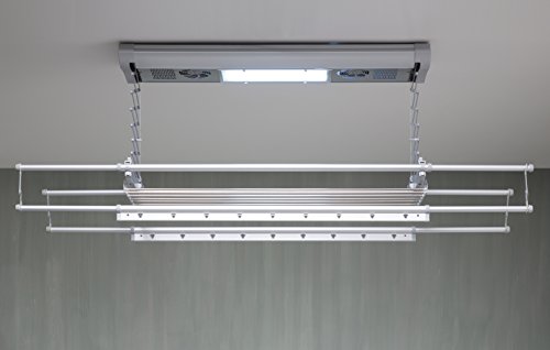 Una de ellas es que este aparato eléctrico funciona con un potente motor e incluso dispone de un mando a distancia para controlarlo en relación a la altura. Además, cuenta con iluminación LED y ventiladores integrados para que el proceso de secado sea más rápido, algo conveniente sobre todo en los días lluviosos.