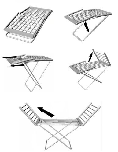 Esta estructura es ajustable en inclinación, de modo que puedas tender todo tipo de prendas con comodidad. En ella, se integra un sistema de calentamiento de 26 vatios, que se encarga de generar calor ascendente desde la base del tendedero, que irá secando tu ropa sin dañar las prendas colgadas.