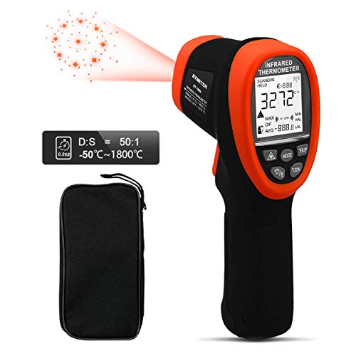 Este tiene un rango de medición que va desde -50ºC hasta 380ºC con una precisión de ± 1.5ºC, lo cual resulta perfecto para hacer mediciones a nivel doméstico, como chequear la temperatura de los radiadores, comprobar el aislamiento en las paredes exteriores, o en la mayoría de los casos como termómetro láser en la cocina, para chequear la temperatura de los alimentos.