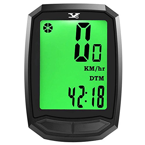 Posee una pantalla LCD con números de gran tamaño que te darán la posibilidad de observar con facilidad los datos suministrados. Su diseño multifuncional es capaz de brindar información y datos referentes a tiempo, distancia recorrida, velocidad y cuentakilómetros. Su instalación no tiene complicaciones ni amerita de cables, solo debes colocarlo sobre el manubrio de la bicicleta donde puedas ver la pantalla con facilidad. Es un dispositivo impermeable para que lo puedas llevar tranquilamente a cualquier lugar y sin temor a que lluvia pueda dañar tu velocímetro. Para su funcionamiento requiere de una batería de 12 voltios CR2032, suficiente para disfrutar de sus prestaciones. Un comprador destaca que el adhesivo que trae para acoplarse al manillar no es de buena calidad y hace que el aparato no dudo tanto tiempo pegado.