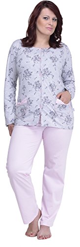 Este pijama es manga larga, de pantalón, abrigada y elegante. Fabricada en 92% algodón y 8% poliéster en la parte superior y en la inferior es 100% algodón, lo que la hace muy confortable para dormir. La blusa es abrochada al frente para dar facilidad a la hora de ponérsela y quitársela. También incluye en su parte frontal dos prácticos bolsillos que la complementan.