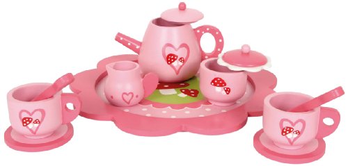 Se trata de un completo juego de té, hecho en madera y con un diseño muy bonito para que las niñas se sientan femeninas y dejen volar su imaginación.