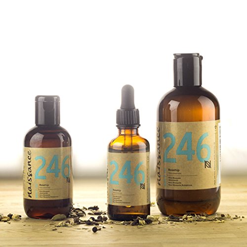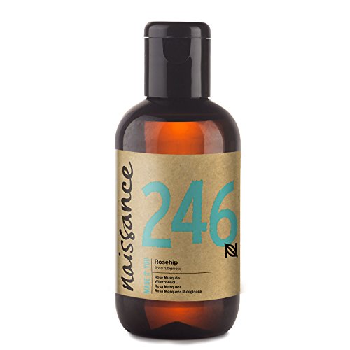 El aceite vegetal de rosa mosqueta Nº 246 de Naissance es un producto que contiene vitaminas, ácidos grasos esenciales y flavonoides antioxidantes, elaborado de la variedad de rosa mosqueta que se encuentra en la rosa rubiginosa y la canina, siendo ideal para tratar cicatrices, acné, arrugas, eccema y uñas quebradizas.