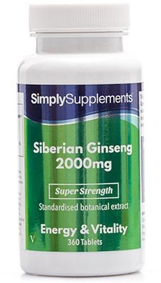 Si te sientes débil, sin ánimos y con mucho estrés, puedes buscar este producto de ginseng siberiano de la marca Simply Supplements, que es altamente recomendado por varios usuarios, gracias a su concentración de 2000 mg de extracto de ginseng siberiano estandarizado a 67 mg, vitamina B5 en una proporción de 900 mcg, entre otros componentes.