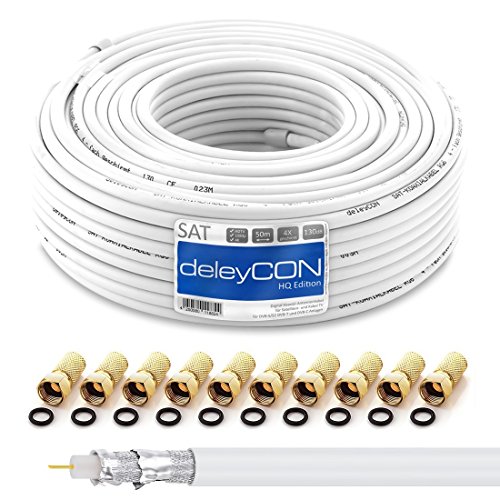 El modelo MK1551 de DeleyCON podría ser el mejor cable coaxial de relación calidad – precio debido a su longitud y capacidad. Se trata de un rollo de cable de 50 metros de longitud para que puedas realizar múltiples conexiones en casa o por si trabajas en la instalación de antenas y decodificadores.
