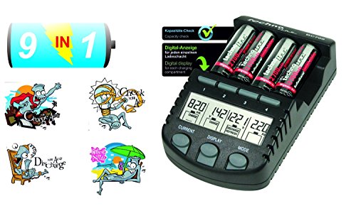 Este modelo reconoce automáticamente el tipo de pila y determina el tiempo de carga y si está en condiciones para soportar o si, por el contrario, tiene algún desperfecto que haga insegura su recarga.