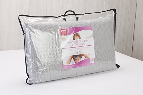 Es una almohada fabricada con un 97% de látex natural y otro 3% de gel que ayuda a que el aire circule con mayor comodidad, facilitando una buena temperatura durante toda la noche, incluso en los días más calurosos.