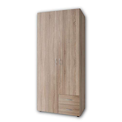 Este favorecido y práctico armario de 2 puertas y 2 cajones, por sus características y bajo costo representa, sin duda, el mejor Armario calidad precio. Cuenta con 80 cm de ancho, 55 cm de profundidad y 180 cm de altura y está diseñado para usar en el dormitorio y guardar ropa o zapatos.