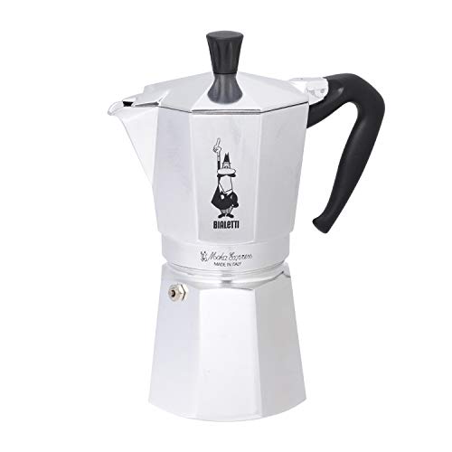 Es una auténtica cafetera italiana fabricada con aluminio de excelente calidad y un diseño clásico de los años 30. Además, al usarla puedes servir hasta 9 tazas de delicioso café expreso y gracias a su válvula de seguridad libera el vapor de agua con facilidad.