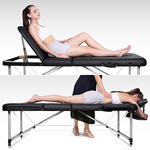 Este modelo te ofrece una resistente fabricación, en la que se combina una estructura de acero inoxidable con un tapizado de espuma y cuero de alta calidad. Elementos que permiten que la camilla soporte hasta 250 kilos de peso en su superficie. El producto es algo más voluminoso y pesado que otros modelos similares, aunque al menos la camilla se acompaña de una funda de transporte, que hace más fácil llevarla contigo. Una camilla de alta calidad y con la que trabajar cómodamente, pudiendo ajustar la posición del paciente a lo que precises. Dado que el producto cuenta con tres zonas de trabajo diferentes, puede ser útil en todo tipo de tareas de masaje, ofreciendo un uso más polivalente que otros modelos del mercado. El producto no se acompaña de instrucciones en español, aunque gracias a los esquemas y a lo intuitivo que resulta el montaje, no deberías tener demasiados problemas para dejarlo listo. Una camilla completa con un resistente marco de aluminio y un tapizado que aguante el uso sin deteriorarse. El producto cuenta con un tapizado de alta calidad, de nada menos que 4 centímetros de grosor. Este acolchado se remata con una cubierta de cuero artificial de alta calidad, que soporta adecuadamente el uso y el roce propio de los masajes. El material de la estructura de la camilla es de un símil madera, frente a los modelos de estructura metálica. Esto supone reducir un poco su resistencia y tener una durabilidad algo más ajustada. Una completa camilla adecuada para trabajos ligeros, fácil de ajustar y con un acabado muy agradable.