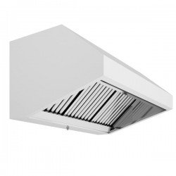 Esta campana extractora industrial está soldada en una sola pieza, con cantos doblados y chapados, así como una soldadura en colectores. Sus tapones de drenaje son de gran tamaño, gracias a los colectores en forma de U la sujeción de filtro de estructura es diáfana.