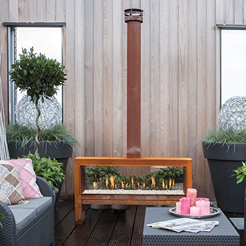 Esta chimenea está elaborada con materiales de alto nivel de calidad y resistencia que, además de aportar durabilidad al modelo, le brindan un estilo moderno y elegante. Incorpora acero corten, un material que permite obtener un diseño lujoso y acogedor.