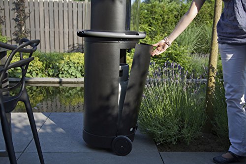 Está disponible en color negro, tiene un peso de 59 kilogramos y está fabricada con materiales de alto nivel de calidad y resistencia, dentro de los que figura el acero. Además, está colocada sobre ruedas, por lo que es móvil. Su uso es recomendado para el aire libre, en espacios exteriores como terrazas o jardines.