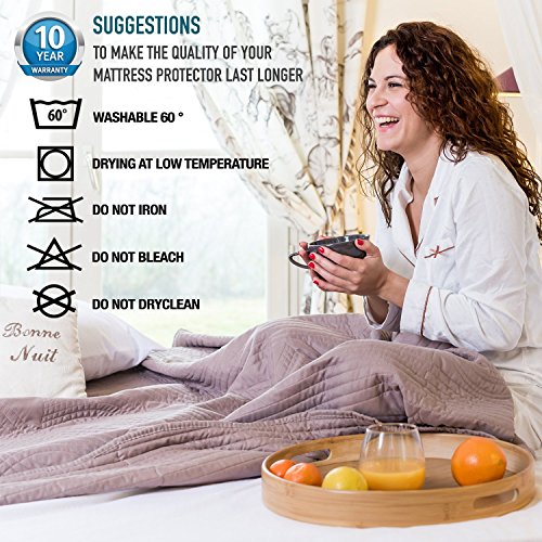 Para tu mayor comodidad, puede ser lavado en máquina a una temperatura máxima de 60º C. También te ofrece un perfecto ajuste gracias a sus laterales con elástico, que evitan que el protector se deslice debajo de las sábanas.