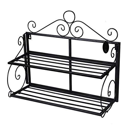 Se trata de una estantería de pared con una estructura sólida, diseño artístico y acabados de hierro lacado, duradera y resistente a la humedad; por lo que podrás montarla indistintamente en ambientes interiores o exteriores. Cuenta con dos niveles para mayor almacenamiento y sus dimensiones son de 49 x 19 x 41 cm y entre los niveles tendrás una altura de 16 cm.
