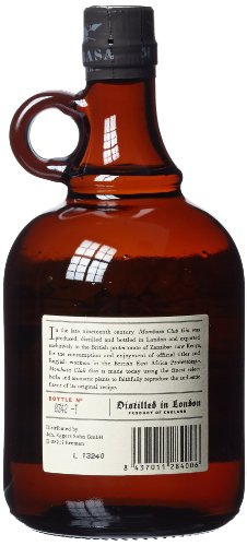 Mombasa Club London Dry Premium es una botella de ginebra que puede tanto beberse como lucirse en el bar. Se diferencia de las otras ginebras debido a que se presenta en una botella de vidrio oscuro que la hace lucir antigua. En la parte del cuello se ha equipado una argolla de vidrio con la que podrás sostener la botella al servir la ginebra.