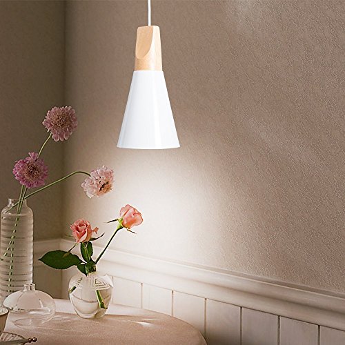 Esta lámpara blanca tiene un diseño en forma de cono, por lo que es minimalista y adecuada para cualquier habitación de hogares, restaurantes, pasillos, corredores o donde el usuario desee instalarla.