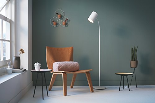 Una luz que podrás generar con la lámpara de pie Philips myLiving Himroo. Este modelo tiene un diseño sencillo, con un pie circular y una estructura de 1,5 metros de altura rematada con un cabezal con casquillo E27 en el que colocar cualquier bombilla según la intensidad de luz que queramos. Un cabezal apto tanto para las modernas bombillas LED como las de bajo consumo.