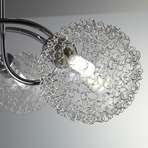 Si quieres darle un toque diferente a tu salón o tu comedor, este producto tiene todo lo que necesitas, dado que te ofrece una estructura cromada y curvada de gran elegancia junto a unas tulipas fabricadas en alambre que no afectan al alumbrado y dan aún más elegancia al diseño.
