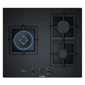 Esta opción entre placas de cocinas de gas de Bosch es una alternativa muy útil y espaciosa para quienes desean preparar diferentes platillos o comidas al mismo tiempo. Posee un total de tres fuegos de diversos tamaños y potencias, para que hagas uso del más adecuado según tu receta.