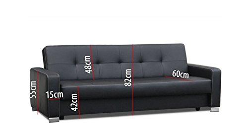 El presente sofá de piel destaca por su diseño moderno y doble función, ya que en pocos segundos es posible convertirlo en cama. Además, su tamaño es de 227 x 90 cm, de manera que cabe en diversos espacios de la casa.
