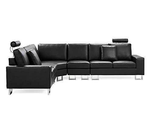 Su tapizado en cuero genuino en todas las superficies de asiento y cuero sintético en la parte posterior y los lados hace que este sofá sea fácil de limpiar. Además, su diseño en forma de L le da un toque moderno y lo hace bastante funcional.