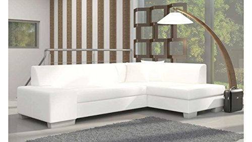 El modelo es adecuado para ahorrar espacio, cuenta con un diseño elegante en color blanco y está cubierto con cuero sintético. Además, dispone de dos cojines y un cajón inferior.