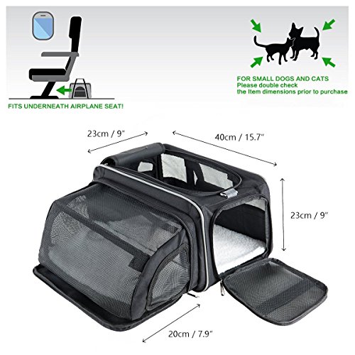 Por otro lado, cuando el objetivo de movilizar a nuestras mascotas es un viaje en avión, se debe tomar en cuenta que las aerolíneas tienen unas medidas reglamentarias para el medio de transporte de nuestros pequeños amigos, esto limita en gran medida las dimensiones con las que debemos comprar nuestro transportín. Este modelo cumple a cabalidad con este requisito, ya que sus medidas son de 40 x 29 x 23 cm siendo una bolsa de fácil manejo para llevar en cabina.
