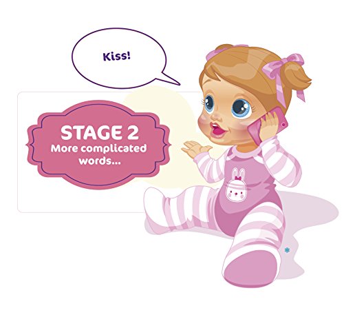 Una bonita muñeca interactiva que va mejorando su capacidad de hablar a medida que se juega con ella, en tres fases diferentes, con un vocabulario total de más de 150 palabras y frases reales que permitirán mantener a los pequeños conversaciones simples con el bebé.