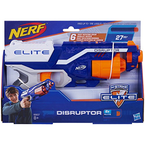La pistola de dardos Nerf Hasbro Elite Disruptor es una forma en que los niños puedan adquirir habilidades de concentración, agilidad, destreza y obediencia, puesto que debe ser usada bajo la supervisión de un padre o responsable. Este juguete trae seis dardos que pueden ser lanzados uno a uno, o soltarlos de una vez en forma de ráfaga.