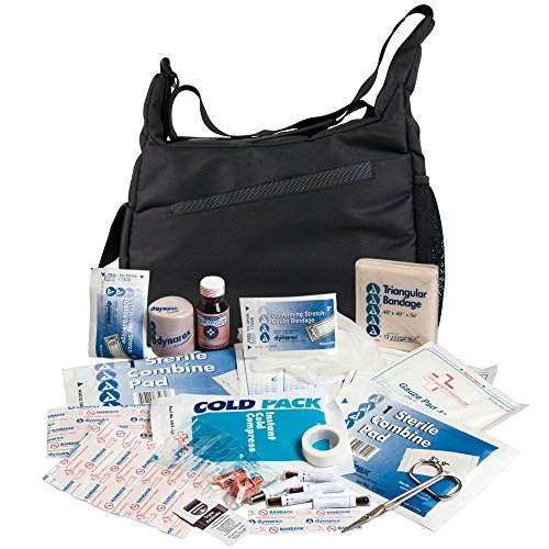 El botiquín viene con múltiples productos para poder atender varias dolencias y sus bolsillos interiores y exteriores también permitirán llevar artículos esenciales como móviles, dinero, etc. Sus dimensiones son de 30 x 20 x 14 cm y tiene un asa regulable para llevar todo con comodidad.