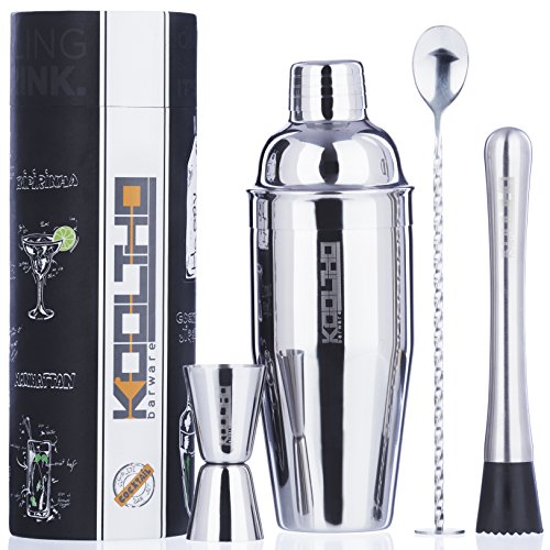 El kit de cócteles está fabricado en acero inoxidable de calidad alimentaria, así que le durará muchos años al mismo tiempo que las bebidas serán completamente inocuas. El set incluye una coctelera profesional con 750 ml de capacidad, el medidor de alcohol, cucharilla mezcladora y un mortero o machacador para triturar el hielo y los ingredientes sólidos.