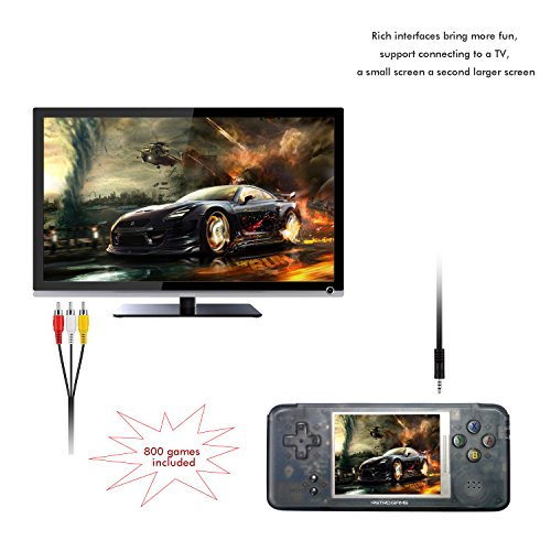 Gracias a que esta consola tiene una práctica salida para conectarla a un televisor, podrás observar con más claridad los 800 juegos que trae.