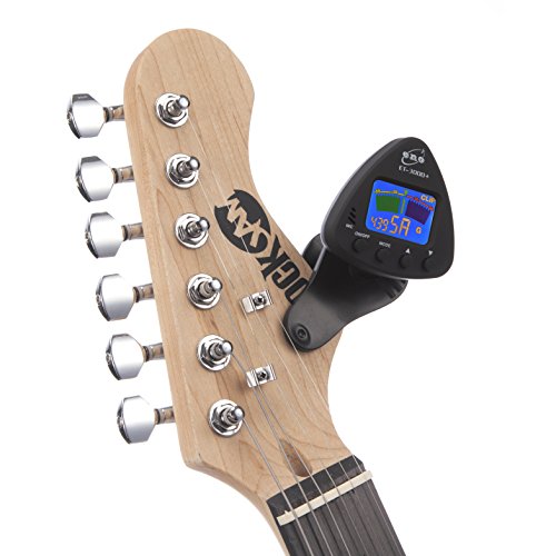 Buscando el mejor afinador de guitarra, hemos encontrado este modelo que resulta muy fácil de utilizar, ya que es bastante intuitivo. Cuenta con una pantalla LCD de tamaño apropiado y con opción de giro a 360º y ajuste vertical, en donde puedes observar claramente la nota en formato de letras que actualmente tiene tu cuerda. También podrás visualizar la frecuencia de sonido para conseguir una mejor precisión en la afinación.