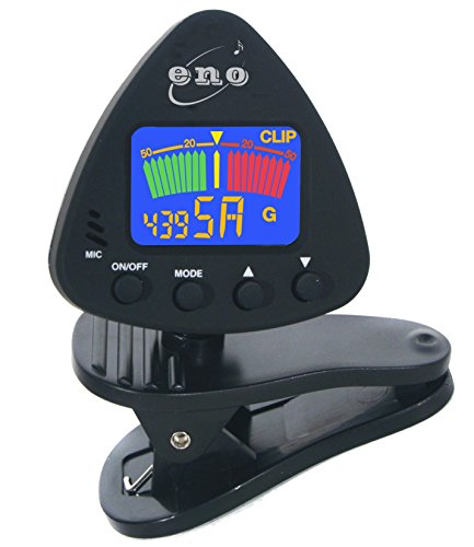 Uno de los modelos que podría considerarse como el mejor afinador de guitarra de relación calidad precio es el que nos ofrece la marca Eno. Se trata de un afinador discreto y compacto de 5,7 x 5,2 x 9,8 cm, que podrás sujetar a la pala de tu guitarra y no dañará el acabado de la pintura debido a que incorpora unas gomas que lo protegen.
