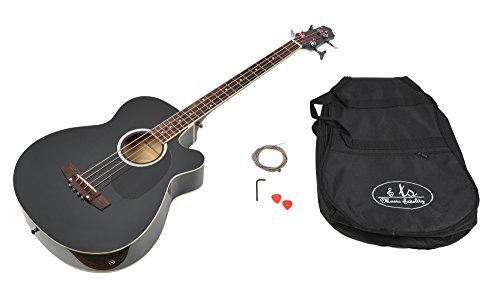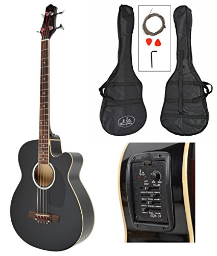 Es un instrumento de 4 cuerdas, fácil de usar incluso para aquellos que están aprendiendo a tocar. Además, está elaborado con maderas de buena calidad, abeto, palosanto y caoba, lo que permitirá una mayor vida útil. Este producto no viene con funda para guardarlo después de cada ensayo o presentación, por lo que se deberá adquirir este accesorio aparte. Sin embargo, lo puedes adquirir por Internet sin problemas. Su color de madera natural permite disfrutar de un instrumento elegante y atractivo, además, las clavijas cromadas combinan correctamente con el cuerpo del bajo. Viene con una funda para guardarlo y transportarlo con más facilidad, la cual también lo protege de arañazos o golpes imprevistos. Asimismo, el kit incluye un afinador que resulta bastante útil, sobre todo para los músicos que son principiantes. Algunos usuarios han indicado que unas cuerdas se amplifican más que otras, por lo que han realizado algunos ajustes al instrumento. Sin embargo, la mayoría de ellos están satisfechos con su funcionamiento. Gracias a que viene con un cable de conexión jack podrás conectarlo al amplificador de forma rápida y sencilla, sin tener que hacer un gasto extra. Cuenta con un sensor de pastilla y preamplificador integrado, para una mejor calidad de sonido. Por otra parte, el diapasón está elaborado en palisandro, el cual es un material resistente. Es el producto con mayor precio de la tabla, por lo que quizá no todas las personas puedan adquirirlo, pero esto no afecta la calidad del sonido que emite. Gracias a que fue elaborado con 22 trastes es posible tocar solos de bajo bastante agudos, además, esta tarea la facilita su diseño Cutaway de la caja de resonancia.