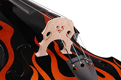 Tiene un acabado brillante, para que destaque un poco más su diseño de llamas. Además, ha sido fabricado con pícea laminada en la tapa frontal, el fondo y los aros de arce. Asimismo, el diapasón es de palisandro, una madera marrón rojiza que combina con la tonalidad del contrabajo muy bien.