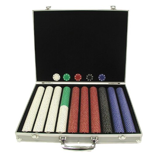 Se trata de un modelo con 500 fichas de peso adecuado y varios colores para asignar un valor a cada una. Incluye además dados, juego de naipes y un maletín elegante.